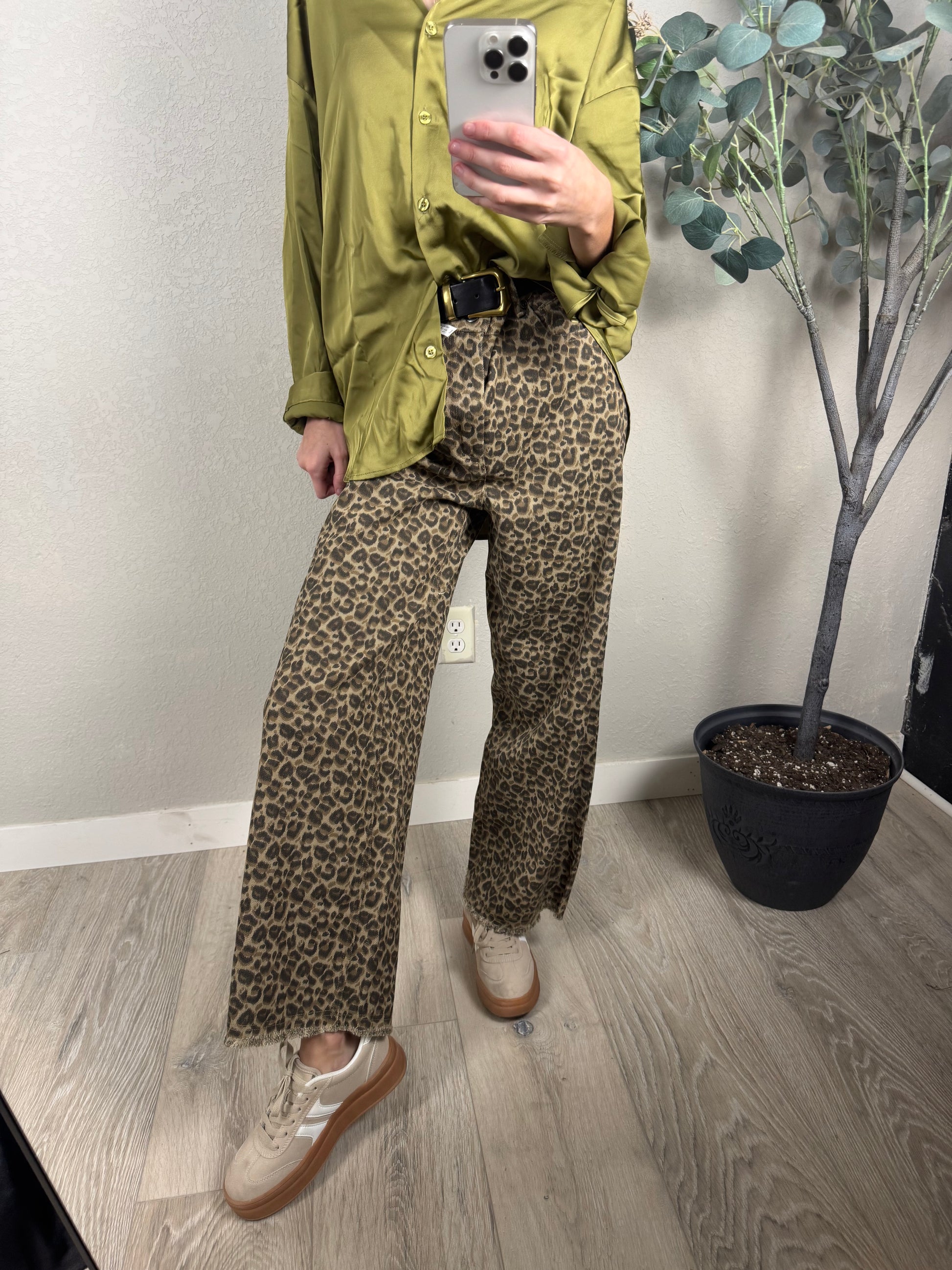 these leopard print denim are perfect for a veritile look, dress them up or wear for a cozy style you cant go wrong with these in your closet.